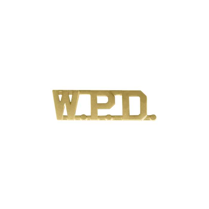Enhance your uniform with this impressive handcrafted "W.P.D." letter combination.