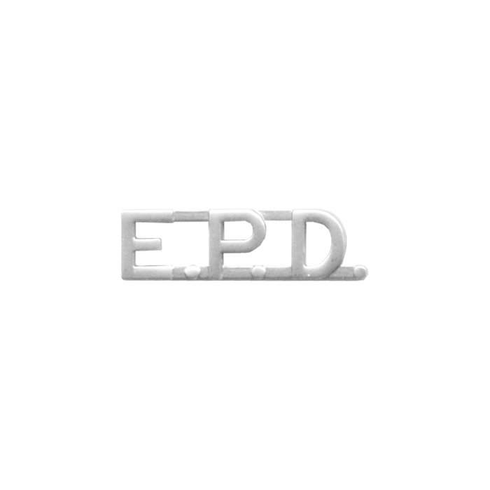 Enhance your uniform with this impressive handcrafted "E.P.D." letter combination. The letter style shown is used to spell out the word.