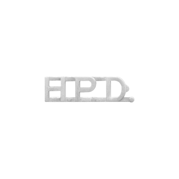 Enhance your uniform with this impressive handcrafted "H.P.D." letter combination. The letter style shown is used to spell out the word.