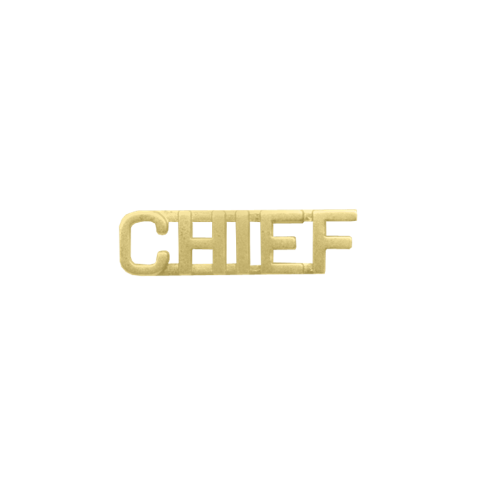 Enhance your uniform with this impressive handcrafted "Chief" letter combination. The letter style shown is used to spell out the word. Available as 1/2" High style A7511, 5/16" style A3941 and 1/4" A7387.