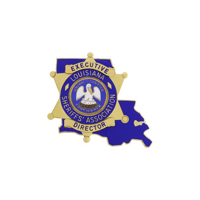 This unique Sheriffs' Association six point star sits atop the state of Louisiana.